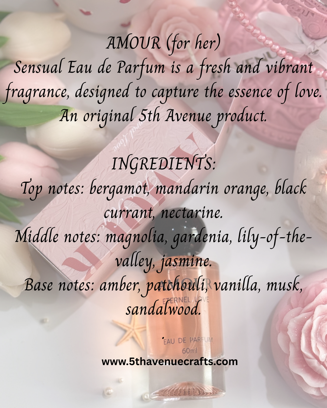 "اختبر جاذبية عطر أمور، العطر الفاخر الذي يجسد جوهر الحب والأنوثة الخالدة.