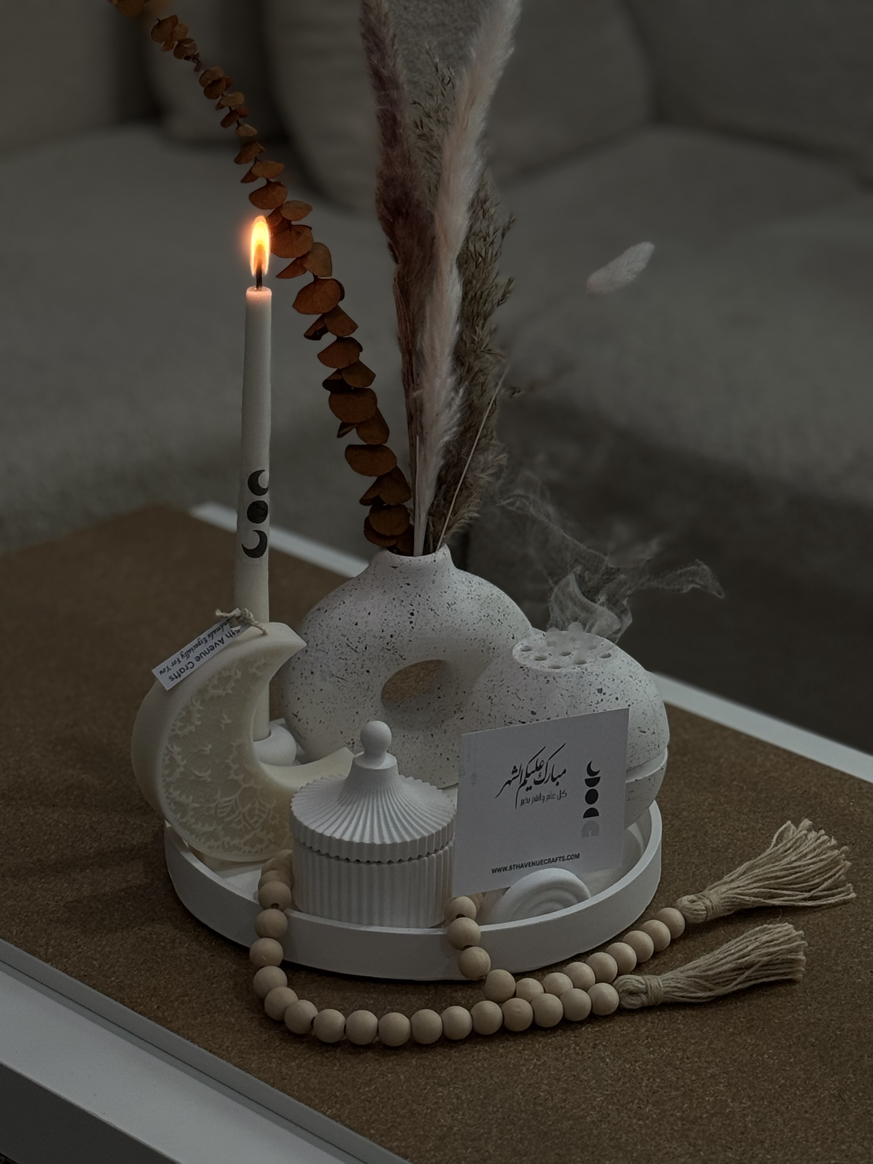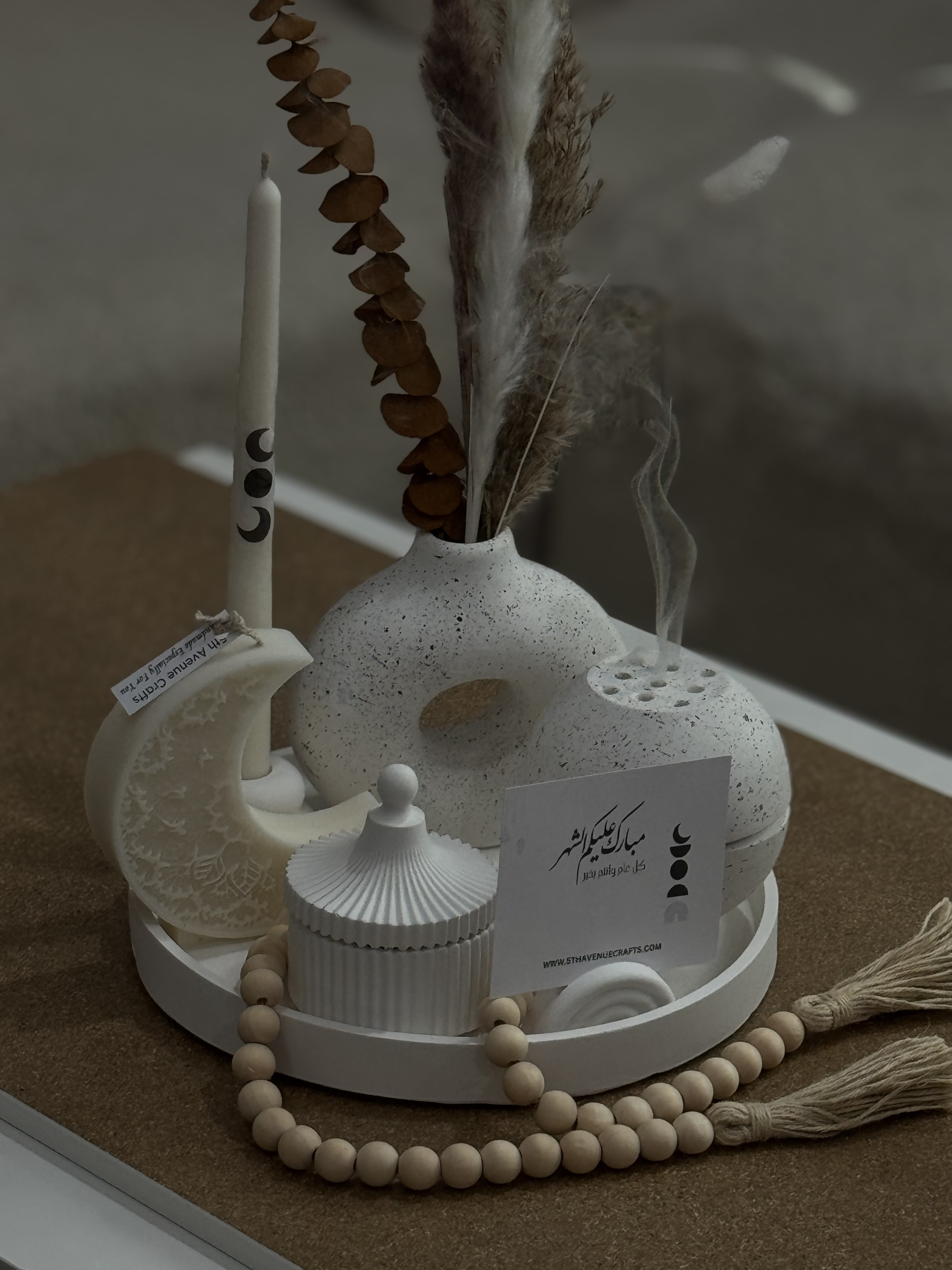 طقم ديكور منزلي بسيط لشهر رمضان، يضفي على منزلك أجواءً هادئة ودافئة.